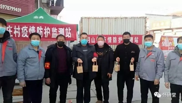 1月31日上午10點,焦作市懷研堂生物科技有限公司工作人員正忙著將公司生產(chǎn)的產(chǎn)品懷姜糖膏用以預(yù)防感冒所需及購買的2000個一次性醫(yī)用口罩分兩次送往為堅守在疫情檢測站第 一 線的干部和黨員群眾,表示慰問!